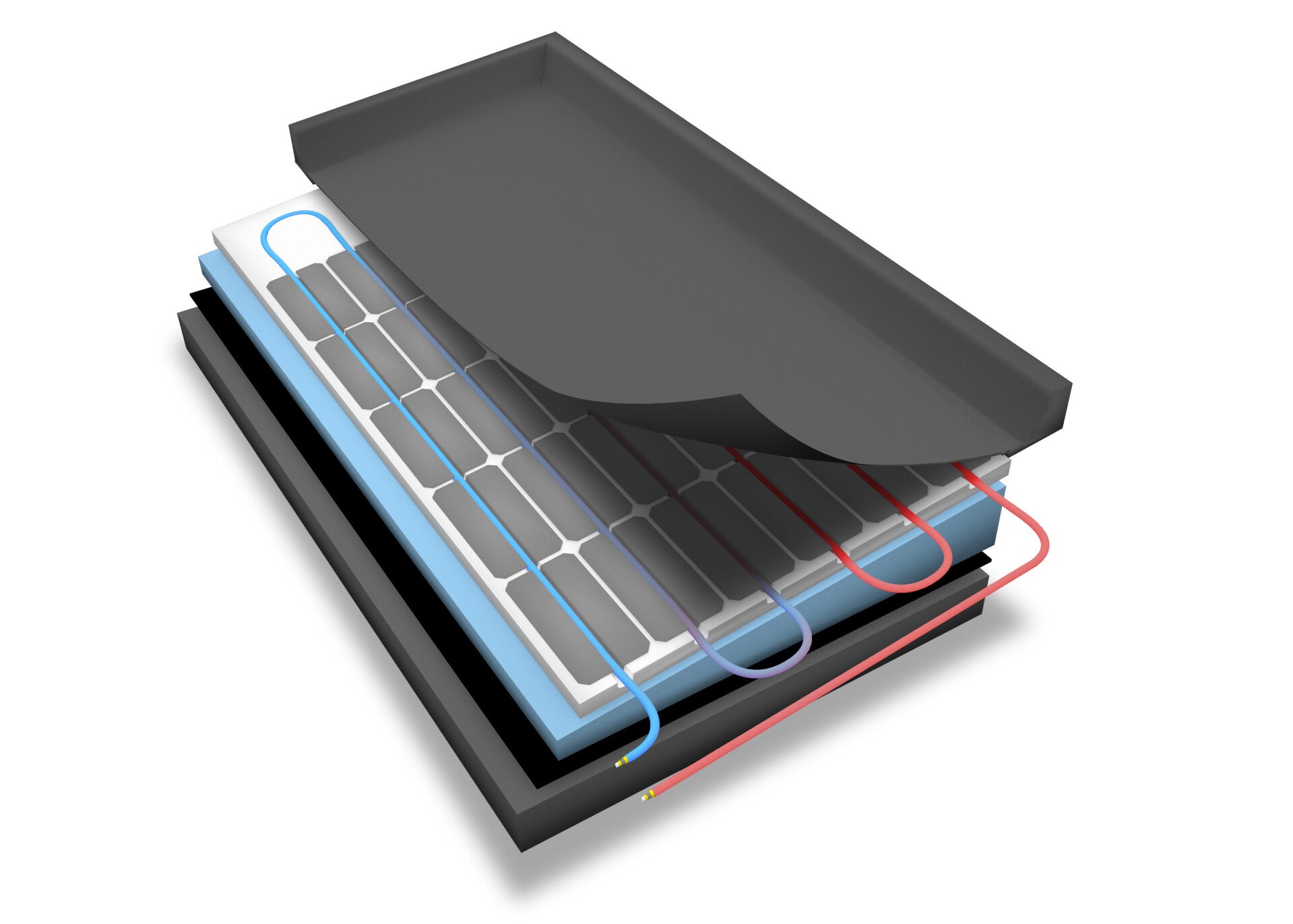Op de donkere dakbedekking kan een flexibel zonnepaneel worden aangebracht; wij spreken dan van Energiedak-Plus.